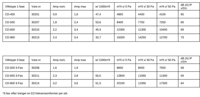 • Frekvensomformer. Kreves til 3-fase viftene.